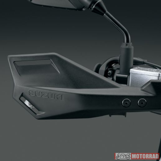 Megvédi a kezet a felverődő kövektől és szennyeződésektől, miközben hangsúlyozza a kalandos (Adventure) megjelenést. SUZUKI logóval ellátva